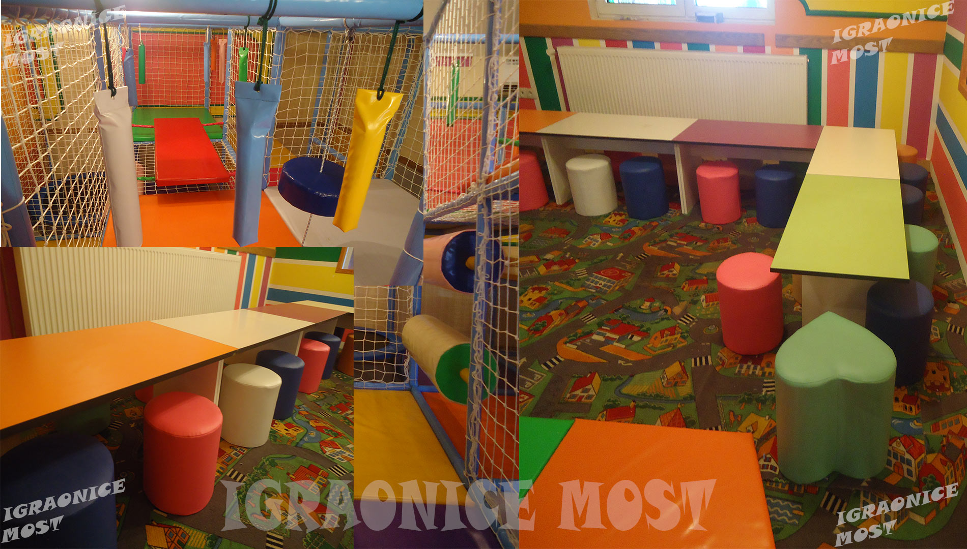 U ponudi su nam kamikaze, žičare, kocke, valjci, piramide, kupe, tobogani, kućice, bazeni sa lopticama, ljuljaške, stolovi za hokej, stoni fudbal, bilijar Itd. Televizori i konzole za igranje najnovijih igrica i jos mnogo toga.